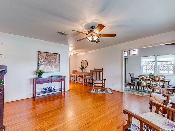 Experience the enchantment of rustic living in the heart of Castroville with this meticulously preserved ranch-style beauty. Walk into red oak floors and a charming vaulted ceiling that exudes rustic grace, creating a cozy ambiance. This home seamlessly combines modern convenience with classic allure, featuring updated plumbing, wiring, a new high-efficiency AC system, and a freshly painted exterior. The expansive private backyard awaits you, offering abundant space for play, relaxation, and entertaining. With a 2-car garage, a convenient workroom, and two bonus rooms for storage, this property is a one-of-a-kind gem. Nestled just a stone's throw from the historic Steinbach Haus, it allows you to immerse yourself in the rich history of the area. This home boasts a perfect blend of history, charm, and contemporary amenities, making it a unique and desirable find in this area.