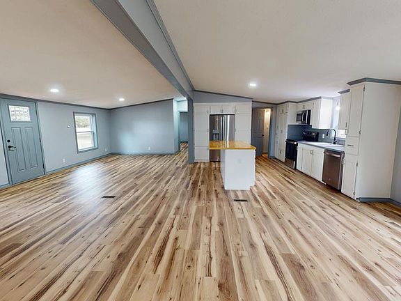 Completely remodeled from top to bottom, this 1994 manufactured home offers 4 spacious bedrooms, 2 full baths, and an open-concept layout that feels brand new. Sitting on a .68-acre fenced lot in a quiet neighborhood, this property delivers the best of modern comfort and small-town charm. Step inside and you'll immediately notice the craftsmanship—fresh paint throughout, new flooring, updated lighting, and a beautiful kitchen with stainless steel appliances, ample cabinetry, and a bright center island perfect for family gatherings or entertaining. The split-bedroom floor plan offers privacy for the primary suite, complete with a large walk-in closet and private bath. Enjoy mornings on the new front deck overlooking the shaded yard or unwind in the peaceful backyard with plenty of room for a garden, pets, or a play area. Conveniently located within walking distance to the city park, this home is move-in ready and waiting for its next chapter. Whether you're a first-time homebuyer or simply looking for a low-maintenance home with land and space to breathe—this one checks all the boxes.