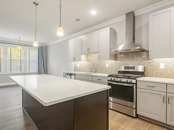 Private balconyModern kitchenTwo car attached garageRecessed lightingLarge islandCommon lakefront deckLakeside townhome