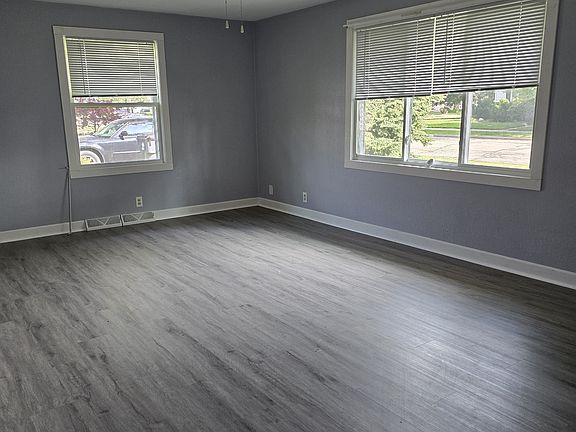 Remodeled Ranch House. Newer windows and new flooring. Quiet neighborhood just a short walk to Douglas Park. 3 bedrooms with nice sized closets. 1 bath upstairs and half bath downstairs. Fenced in back yard. 1.5 car garage. 2 animals allowed except no cats. 1st month rent and security deposit due at signing.