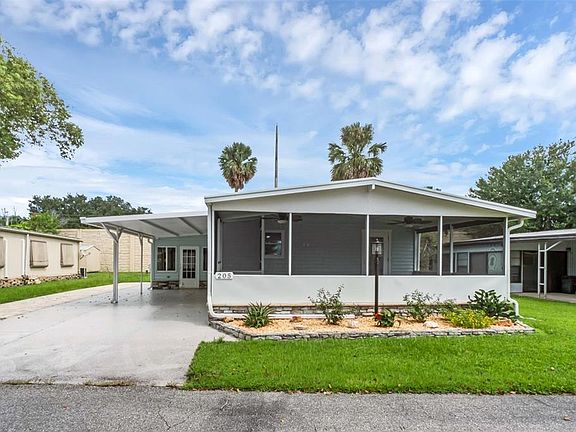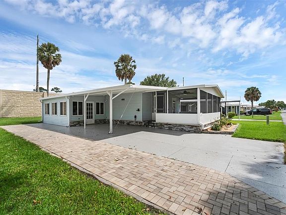 STOP THE CAR, THIS IS THE ONE! Fully Updated Top to Bottom, Inside and Out. Welcome to 205 Meadowlark Lane where comfort meets today's upgrades. This home only needs one thing... YOU. Fully Updated Kitchen with soft close doors and cabinets, granite countertops, Newer Appliances, New Vinyl Flooring, Updated Bathrooms, Walk-in Showers, Living Room with Electric Fireplace, Trek Deck Large Enclosed Screened in Front Porch, Newer Windows, "Forever Roof", Enclosed Sunroom with a mini-split. Covered Carport with new Coated Driveway, Expanded Pavers for extra parking, Large Storage Shed for all your extras. This home has it all and it's now waiting for the perfect owner. WELCOME TO KOVE ESTATE a 55+ CO-OP Community Resort Style Living at its finest, all the thrills without all the fuss.a premier 55+ community in Osteen. There is no lot rent, as a share in the community conveys with the sale. With a monthly cooperative fee of $270 which allows you to Enjoy Year Round 9 Hole Golf Corse, 2 pools, one heated, tennis courts, pickle-ball, community events and the peaceful nights all in your very own gated community. Located just outside of Historic Sanford.