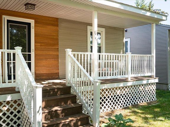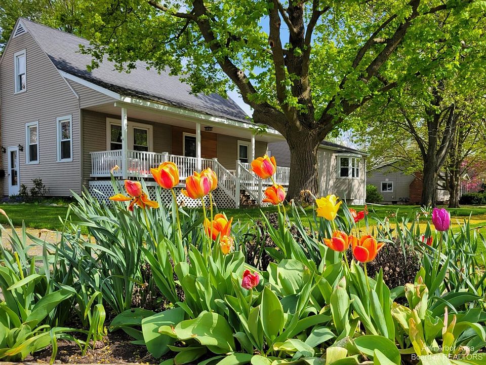 Country living in town! This captivating 3bd/2bth Cape Cod is ready for you to enjoy. Nestled on a corner double lot in a neighborhood with mature trees, this home features many updates along with vintage details! Enjoy lounging on the front porch with composite decking, and spend your evenings relaxing in the screened porch overlooking the spacious yard, raised bed gardens and pet chickens. Step inside onto the hardwood floors that continue throughout the original home. The kitchen features solid wood vintage cabinets and opens into the adjacent dining area. The laundry is conveniently hidden in the sunny breezeway that transitions to a huge addition. The family room is especially inviting with warm pine walls and a wood stove, and leads to a generous first floor owner's suite. A second b bedroom and another full bath are also tucked away on the first floor. The second floor is finished with a bedroom and more flex space, extra deep closets, and built-in storage. There is an easy flow to the home which provides home office options throughout. The car enthusiast will love the two-car garage with water and electric! Minutes from US-23, downtown, library, parks, schools, this one will steal your heart!, Primary Bath