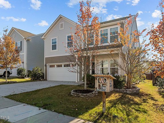 This stunning 5 bedroom 3 bathroom, plus loft and home office property combines contemporary design with practical functionality. The first floor welcomes you with an open-concept layout perfect for entertaining, with formal and informal dining spaces. In the bright modern kitchen, the generous kitchen island offers plenty of space for cooking, storage, and additional seating. Cooks will also appreciate the walk-in pantry and upgraded appliances. Those who work from home will also love the designated home office, set apart from all the bedrooms. Upstairs you will find the spacious primary suite with a spa-like bath, including a shower with a bench and rainfall showerhead, and a large walk-in closet. There is also a loft for casual relaxation and tv watching, or perhaps just the perfect area to contain games, toys, and all of the people who enjoy them. There are also 3 other generously sized bedrooms and another full bath upstairs. Outside, welcome your guests outside to relax under the pergola or around the firepit in your private fenced backyard or invite them over to enjoy the community's pool and clubhouse. And it is all conveniently located near shopping and dining, with a quick commute to the heart of RTP. Its proximity to major highways also ensures an easy commute to nearby cities like Durham, Raleigh, and Cary.