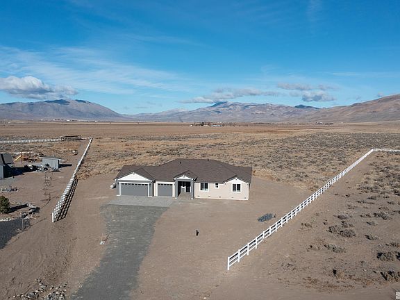 Welcome to your piece of the quintessential Northern Nevada experience - expansive spaciousness and the freedom to use it as you choose. Endless skies over a picturesque valley culminate at this new build on five acres. The rolling, snow-dusted hills envelop you as you ride atop elegant pavers through the parking and driveway areas. Minimal CC&Rs and absolutely no HOA means that your plot is yours to play with and play on, be it with large-toy storage, self-sustained gardening,, or treehouses and pump tracks aplenty. Bask in the sunshine of a Nevada day while the dogs run and the kids play, out of sight but within the safety and solitude of your acreage. Wander your property with your morning coffee, stretching your legs and surveying your swathe. Stunning two-tone stucco and upgraded garage doors start the elegance. It continues inside with eye-pleasing contemporary features such as striking eight-foot raised panel doors throughout, five-inch baseboards, and high-end flooring. Breathe in and appreciate the breadth of the high ceilings and mountain views in the great room. Snuggle up and cozy with a family movie night or enjoy the peace and quiet of the country living experience. The modern style of light-colored, square-edged granite countertops balances the timeless wooden cabinets. The breakfast bar island, walk-in pantry, upgraded cabinets, and breakfast nook give all the space and storage needed to entertain a group or maintain daily life. The owner's suite features a walk-in shower and spa-like bath, where attention to detail continues. Separated double sinks offer more of the expanse this home embodies. At the same time, the soaking tub beckons you to slow down and relax. When the day calls for action, the walk-in shower and 2 walk-in closets move you along with ease. This home features a bonus room that can function as flex space, craft room, guest room , or office space. A unique Jack and Jill double bath with barn doors, and shared shower separates the two secondary bedrooms. Get the charming rural experience with an included deep well (supported by whole-home water filtration) and septic, as well as shared road maintenance by property owners. Complement that with the ease and conveniences of urban living just down the road, giving you the best of both worlds. Step back to when we all had room to breathe. The American dream of white picket fences has shifted to wide-open spaces, and Morgan Ranch Court delivers. This new construction home is completed and move-in ready for you to enjoy now.