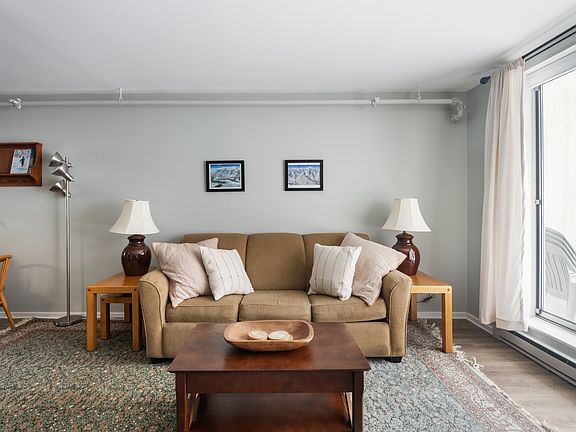 Prime location in the heart of Sugarbush Village, offering stunning views and convenient 2 minute walk to Lincoln Peak trails, shops, restaurants, and more. This cozy 1 bedroom / 1 bathroom Mountainside condo features a sun-filled, south-facing living room with comfortable seating, including a large pull out queen sofa plus reclining arm chair. The main bedroom offers a Queen bed, big screen TV and ample closet space.