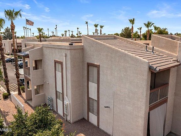 Welcome to this second-floor corner unit condo located in the desirable south end of East Mesa. This home features an open floor plan with a spacious living area that opens to a two covered balconies—perfect for relaxing or entertaining. The kitchen includes a window for natural light and a convenient layout, while the in-unit stackable washer and dryer add everyday ease. Covered parking is just steps from your door. Enjoy resort-style living with access to two community pools (heated during the winter months) and two hot tubs. Conveniently located near freeways, shopping, golf, and more. Please note: HOA has pet restrictions—buyer to verify requirements.