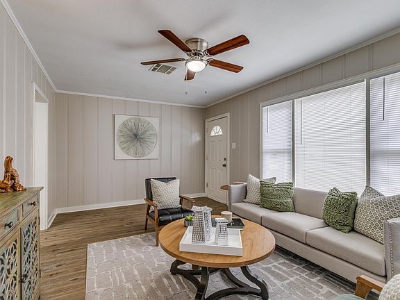 Additional storage closetsAccess to the backyardExtra-wide hallwayGenerous cabinetrySmall storage buildingCovered front patioBright bedroom