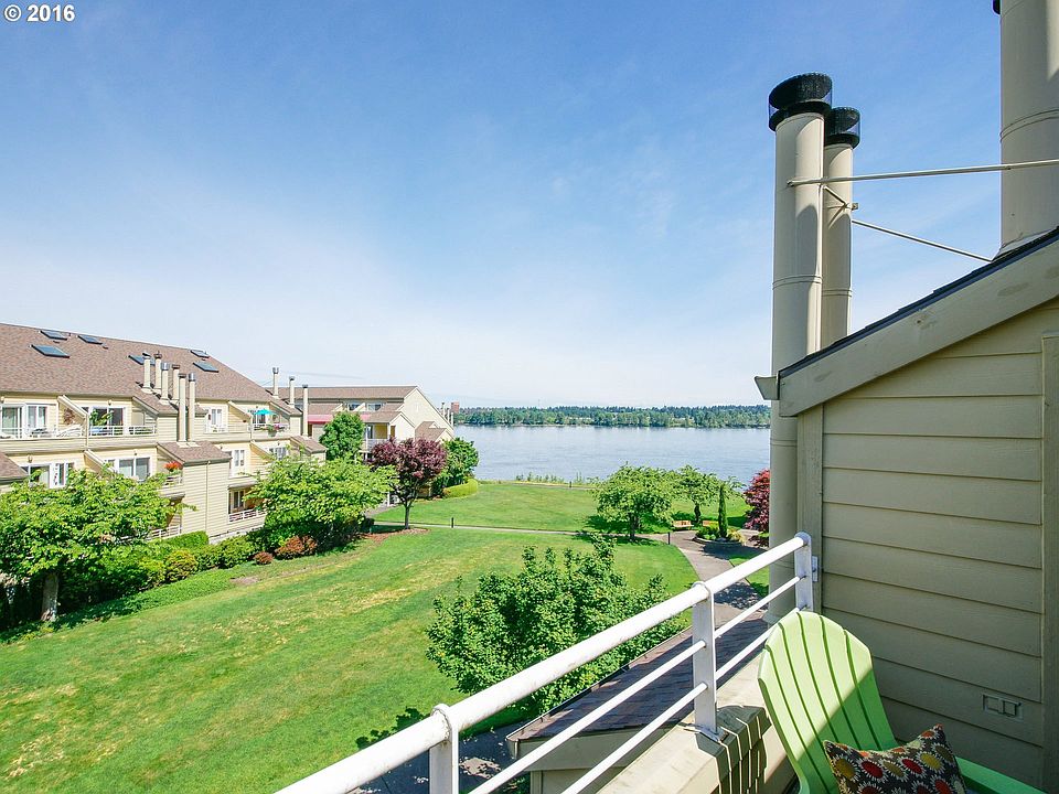Terrific Value! Sunlit 2 bed, 2 bath upper level unit, at popular Columbia Point West, is peaceful + serene w/soaring vaulted ceilings, clerestory windows and unending views of the majestic Columbia River. Open kitchen, inviting fireplace + big balcony make entertaining easy + lots of storage makes everyday life simple. Enjoy the convenience of true island lifestyle, nearby transit, restaurants + shopping.Elevator access makes it easy!