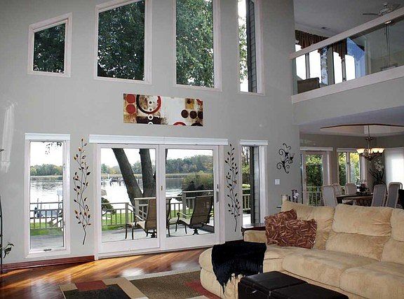 BUILDERS OWN HOME! VERY UNIQUE. GREAT LAKEFRONT. HOME DESIGNED AS 4 BED. 2X6 EXTERIOR WALLS. LAKESIDE HAS FLOOR TO CEILING WINDOWS. LOFT & SITTING RM W/ BREATH TAKING VIEWS!! VOLUME CEILINGS. DINING RM & KIT W/GRANITE C-TOPS, SS APPL & BREAKFAST BAR ARE ALL OPEN TO THE VIEW + ALL LEAD TO THE LG DECK & PATIO FOR ENTERTAINING. MASTER SUITE W/LUXE BTH. OVERSIZED 3 CAR HEATED GAR!! BRAND NEW ROOF, GUTTERS, STAIN, STONE FIREPIT WITH SEATED WALL.