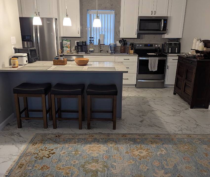 Downstairs modern luxurious apartmentThree seated islandTwo bedrooms