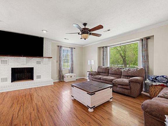 Wow! This home has so many great features if you have a large family or need extra room to work from home. There are 5 BEDROOMS plus 3 FULL BATHS all on 1.17 acres plus a large storage building. Fresh paint, new septic system, new flooring all make this home in move in condition. Central heat and air on upstairs level, downstairs has ceiling cable heat in bedrooms, heater fan in bathroom, and gas logs in den area. Enjoy great views of the yard and creek from the back deck.