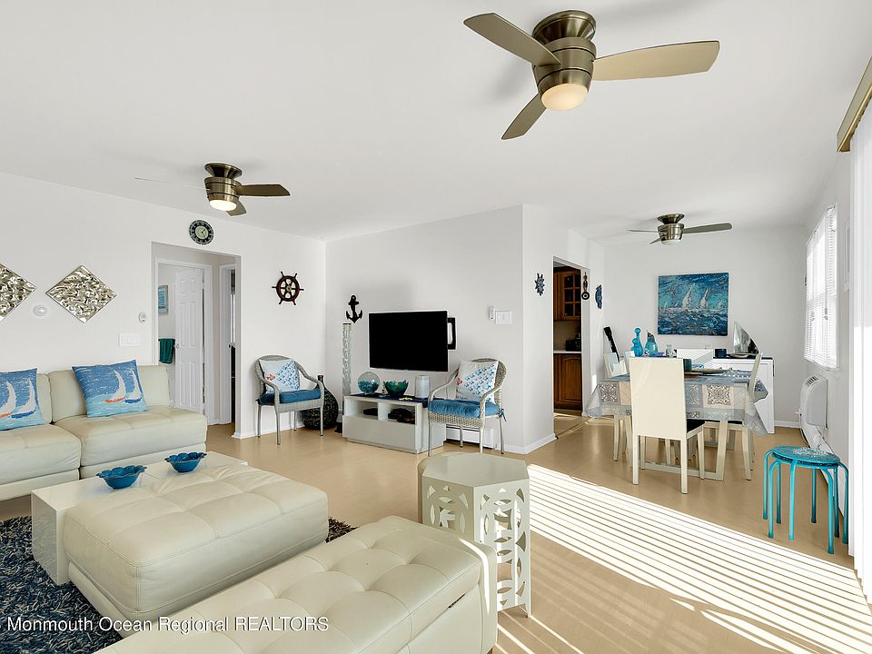 WINTER RENTAL - Impressive views from this gorgeous oceanfront condo across the street from the beach & boardwalk in Belmar's quiet north end. This luxurious first floor unit features a large attractively furnished living room, comfortable dining area for six, updated kitchen with stainless steel appliances, a lavish renovated full bath with dual vanity & shower in tub with frameless glass door, a large guest bedroom & primary bedroom with attached half bath. There are attractive laminate & tiled floors throughout, overhead lighting, ceiling fans & three wall a/c units. There is one assigned off-street parking space & common laundry in building's basement. Heat, hot/cold water & cooking gas included. Available 10/15/25-5/15/26. Owner seeks well qualified applicants. No pets, no smoking!