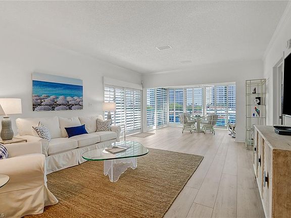 Park Shore Penthouse features a spectacular wide bay view and private beach access. Available now for 2026 season. Located across from Venetian Village where you will enjoy many fine restaurants and specialty shops. Take the elevator to the 4th floor and enjoy the tranquility of this 2 bedroom plus den with no one living above and quiet, impact resistant windows. High 10 foot ceilings with new flooring and furnishings. Lovely community pool, spa and guest room available. Grill provided for each building. Turnkey furnished. 1 assigned covered parking space and ample open parking. Any lease less than 6 months is subject to State and County tax.