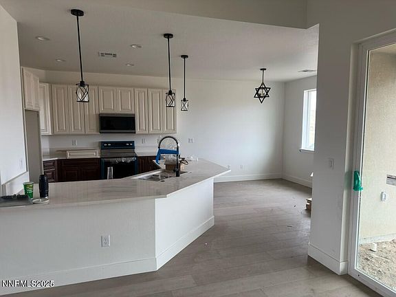 New Construction on nearly 5 Acres with NO HOA. Enjoy the Palomino Valley lifestyle with outstanding daytime mountain and valley views and nighttime views of amazing starlit skies. This home features a split plan with spacious and beautiful primary suite with dual walk-in closets, dual sinks, private toilet, walk-in shower, free-standing tub, ceiling fan, and direct access to the covered patio. The second and third bedroom share a bath on the opposite end of the home. The kitchen has beautiful tall cabinets with quiet close hinges and drawers, stainless appliances, large contemporary stainless sink and black faucet. Additional features include upgraded high capacity well pump, whole home water filtration/conditioning system, tank less gas water heater, laundry sink, covered patio, and room for additional buildings and RV Parking. Horses and other animals are welcome here. You are just minutes away from outdoor activities at Pyramid Lake, Moon Rocks, and riding, hiking, etc. Shopping, groceries, restaurants, car wash/services, pharmacy, emergency care, and schools are within 25 minute drive time. Washoe County Schools bus service is available to and from public schools. New Construction on nearly 5 Acres with NO HOA.