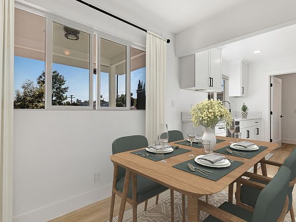The kitchen features shaker cabinetry, quartz countertops, and modern stainless appliances, with an open floor plan that flows into the dining and living areas. Both bathrooms were fully remodeled with contemporary fixtures and finishes. Generous closet space and abundant natural light enhance every room.