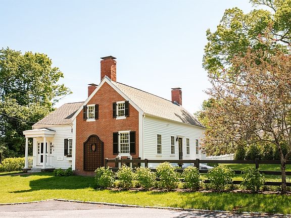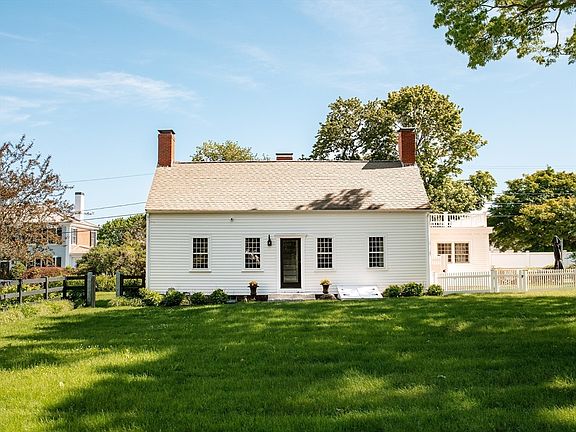 A rare offering in coveted Powder Point just 1/2 mile to the iconic bridge, this historic haven blends coastal lifestyle with architectural charm. The 3BR main house features original ship beams, 6 fireplaces & wide pine floors, w/ a sun-filled kitchen addition & banquette dining opening to private patio. Upstairs bedrooms retain antique character -cozy in scale w/ shared updated bath, radiant heated floors. A Campbell-Smith architect designed 2023 oversized 3+ car garage offers a luxe accessory dwelling w/ radiant bath, kitchenette, living area & water views-ideal for guests, rental, or work-from-home. Huge backyard was recently cleared, landscaped, fenced and is full of potential- room for pool / pool house, sport court and even a second main house. Deeded beach & mooring rights included w/ membership in the Powder Point Beach Trust.