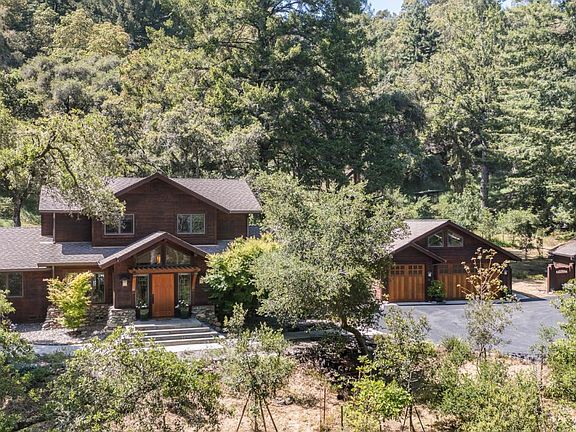 Welcome to 205 Quail Ridge Rd., an impeccably built craftsman home nestled in a serene setting. This exquisite residence boasts a well thought out floor plan, hand carved touches, and high end lighting showcasing the attention to detail and craftsmanship in every corner. Set on 2.84 mostly flat acres of tranquil, lush surroundings, this property offers an ideal escape with multiple outdoor sitting areas perfect for relaxation and entertainment. The spacious interior features 3 bedrooms, 2.5 bathrooms, a large kitchen designed for the culinary enthusiast and multiple dining possibilities. The inviting living room is a highlight of the home, featuring a stunning fireplace with a hand-carved mantle, abundant natural light, and beautiful views of the surrounding landscape. The primary bedroom, located on the first level, is a luxurious retreat offering an oasis of tranquility and comfort. Upstairs, you will find two generously sized bedrooms, each designed with comfort in mind, and connected by a well-appointed Jack and Jill bathroom. A dedicated office area provides a quiet space for work or study. The home is complete with a 3-car garage, offering ample storage and convenience. Experience the perfect blend of luxury, comfort, and nature at this remarkable Scotts Valley home.