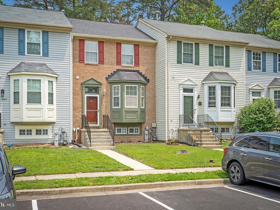 One of the largest models in the community of Aspen Park situated on a cul-de-sac with a fenced rear yard. This unit has been beautifully upgraded and includes a lot of features that make it an ideal place to call home, including the roof (10/23), HVAC (2022) and water heater (5/21). There is an entry foyer that leads up to the half bath opening to the eat-in kitchen with bay window along with granite counters and stainless steel appliances. The kitchen has a pass thru to the dining area and spacious living room combination with a corner brick fireplace. An upper level includes a primary suite vaulted ceiling, walk-in closet and a full bath featuring dual vanity. Two other bedrooms are generously sized and there is a second full bathroom. The lower level has a family room with level walk-out, a half bath and a large laundry/utility room with windows. the yard includes a patio, deck and privacy fence. A playground and common area are a block away and the community hosts food truck events and gatherings there. Ideal location near Route 100, Route 2 and an easy commute to 97, 695 and Fort Meade/NSA. Open house 6/7/25 12pm-2pm.