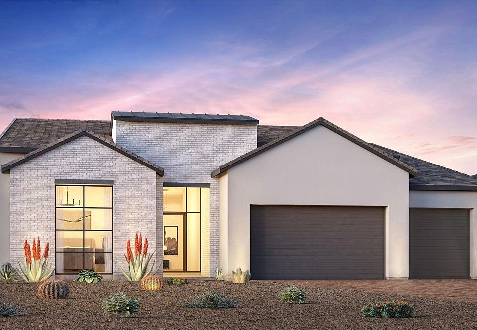 NEW CONSTRUCTION by Toll Brothers — Glenrock in Summerlin, Homesite 86 | Grey Crest Cottage. The Grey Crest is a 3-bedroom, 3.5-bath, 3,083 sq. ft. single-story home that blends elegance with thoughtful design. A grand foyer leads into an open great room with a linear fireplace, flowing seamlessly to the formal dining room and a stunning covered patio through a 16-foot sliding glass door for effortless indoor–outdoor living. The gourmet kitchen features an oversized island, cozy casual dining space, versatile workspace, and two walk-in pantries. The luxurious primary suite offers a spa-inspired bath with a freestanding tub, spacious shower, dual vanities, private water closet, and a generous walk-in closet. Two secondary bedrooms each include a private bath, while a powder room, everyday entry with drop zone, and convenient laundry add ease to daily living. An expansive front porch with storefront windows. Still time to personalize this home in the design studio!