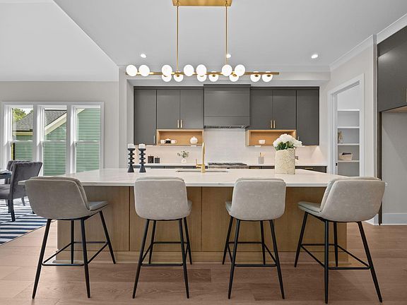 2025 Parade of Homes Entry! Custom Built by Russin Homes in Private Community with Tranquil Pond Views! Offering 1st Floor Owner's Suite & Guest Suite! Wide Plank Hardwoods Throughout Main Living Areas! Gourmet Kitchen offers a Large Island w/Quartz Top & Barstool Seating, Accent Pendant Lighting, Designer Backsplash, Custom Painted Cabinets, Stainless Steel Appliance Package Incl Built in Gas Range, & Huge Walk in Pantry! Open to Vaulted Dining Area Flooded w/Natural Light! Owner's Suite offers Trey Ceiling w/Beams, Hardwoods, and Slide to Rear Porch! Luxurious Owner's Bath features Dual Vanity w/Quartz Countertop, Zero Entry Shower with Tile Surround, Freestanding Tub & Spacious Walk in Closet! Family Room with Backlit Trey Ceiling, Tile Surround Linear Fireplace w/Flanking Built ins & Large Sliders to Screened Porch! 2nd Floor Oversized Gameroom w/Wet Bar, Storage Areas & Spacious Secondary Bedrooms!