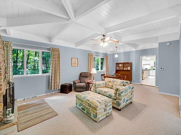 WALK TO THE BEACH from this ONE OF A KIND HOME in a one of a kind community. As unique, eclectic, and welcoming as the town of Beverly Shores, this SPRAWLING RANCH has room for beach weekend frivolity, while also offering tucked away spaces for quiet retreat. The main wing features a gracious living and dining room with its natural STONE FIREPLACE, BEAMED CEILINGS, and big windows. The HUGE KITCHEN provides so much space, tons of cabinets, a large pantry, and stainless appliances that include a NEWER SIX BURNER RANGE and DOUBLE WALL OVENS. The bedroom hallway leads to a roomy OWNER'S SUITE with a WALK-IN CLOSET and ENSUITE BATH, along with two additional bedrooms and another bath. But there's more - an enormous GREAT ROOM, with everything your guests need for an extended visit, or could work for RELATED LIVING. This huge space has GUEST KITCHEN, full bath, and 3 California Closets MURPHY BEDS that will remain for the new owner. A handy laundry room leads to the ATTACHED GARAGE, and a partially finished basement and additional crawl spaces are available for storage. Don't forget the outdoor space - a WALLED BACK YARD, NEWER PATIO, RAISED BED GARDEN, and an ADDITIONAL WOODED LOT all combine for a HALF ACRE OF NATURE and PRIVACY. The friendly FRONT DECK and EXTRA GUEST PARKING overlook Broadway, which leads right to the beach - taking a stroll to enjoy the sunset can be part of your daily routine. ROOF, FURNACE, WATER HEATER, and AC , GARAGE DOOR and OPENER, and STORM DOOR ARE ALL NEWER. Ask your agent for the list of improvements. The price per square foot leaves MONEY IN YOUR POCKET! If you love a great beach party, but also cherish peace and quiet, don't miss this RARE OPPORTUNITY for SO MUCH SPACE, SO FEW STAIRS, SO CLOSE TO THE LAKE! This one is PRICED TO SELL!