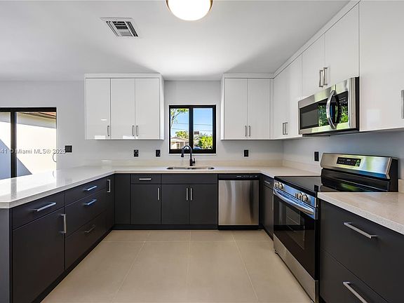 Rebuilt from the ground up in 2025, this stunning home offers a spacious open-concept layout with one car garage, and elegant porcelain floors and modern finishes throughout. The kitchen features contemporary cabinetry, quartz countertops, and sleek design details. It includes 3 bedrooms and 2.5 bathrooms, beautifully updated with stylish bathrooms and premium fixtures. The circular driveway and landscaped front yard create a welcoming entrance, while the expansive backyard provides endless possibilities for outdoor living or entertainment. Central A/C, impact windows, and move-in ready condition. Conveniently located in the heart of Dania Beach, east of US-1 — just 5 minutes from the beach, airport, shopping, casinos, and a vibrant mix of dining and cultural attractions.