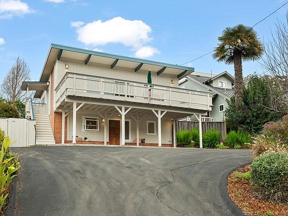 Welcome to Sand Street a quiet, friendly neighborhood at Rio Del Mar Beach. This south-facing home sits on an elevated lot where you can enjoy some morning coffee on your glorious deck while listening to the ocean waves and soaking up the sun. The grand patio entrance is very inviting and the backyard creates a private getaway with native plants. Enjoy a versatile floorplan with a downstairs game room and secondary kitchen perfect for multi-generational living or guests. The upstairs offers spacious open-concept living and a fireplace for those cozy nights. This beach house has many eco-friendly touches including owned solar panels, an on-demand water heater and separate furnaces for each floor. Take a 5 minute stroll down to Pixie Deli for lunch, hit Venus Spirits for cocktails, then pick up some snacks at the corner market for a sunset on the beach. What a life. Dont miss this one-of-a-kind opportunity.