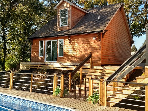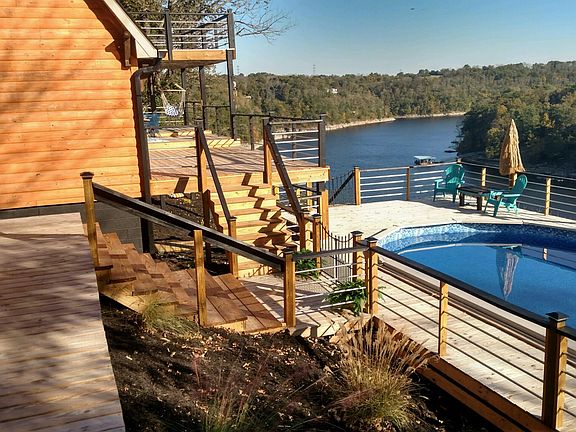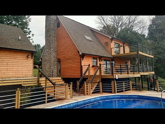 water front Lake Log Home with Breathtaking views from all rooms of the home. 1720sqf home has open floor plan. Great room has 19 ft vaulted ceilings. Floor to ceiling stone fireplace with large hearth. Kitchen has custom made cabinets with granite countertops. All new Stainless appliances. Hardwood floors, custom sliding barn doors, sky lights, 3 bedrooms, walk in closets, master suite has large private balcony, 2 bath with tiled floors and showers, basement. Stunning lake views and outdoor living from 5 tiers of decking. 30 X 15 pool overlooking the lake for entertainment and luxury living. 2 car de-attached log garage, log outbuilding, approx. 600sqft log guest quarters with additional full bath and bedroom suite, guest house has spectacular views of the lake and overlooks the pool. Walking distance of 3 marina's and a short drive to the golf course. Great location, 30 minutes from lexington, 15 minutes from Nicholasville. Home is all newly updated with no expense spared. Property is almost 1 acre (0.90). Is in a lovely restricted community, Hideaway Cove. This is a great opportunity to own such a unique property so close to Lexington, KY.