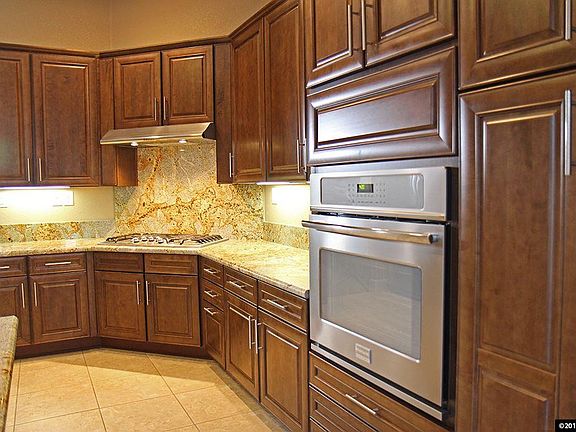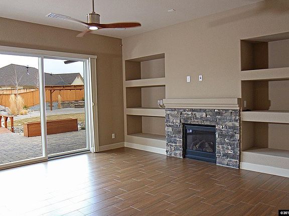 This Spanish Springs home has 3 bedrooms, 2 bathrooms with mountain views. Immaculate and fully landscaped backyard offers a water feature, koi pond, paver patio, gas firepit, garden area with water valve, pergola, dog run, horseshoe pit, and more! Backyard also has a shed with electricity, and flood lighting. The kitchen has granite counters, pantry with pull out shelves, and breakfast nook. Master suite contains walk-in closet, a rock faced fireplace, and dual sinks.
