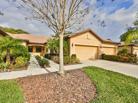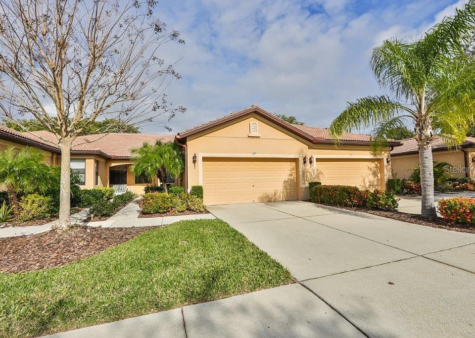 This barely lived in, well cared for villa in Del Webb's Southshore Falls 55+ community would be a perfect home for year round or seasonal residents. With 3 bedrooms, (or 2 bedrooms and a den/office), 2 baths and a 2 car garage, this home offers all the necessities and many of the optional needs for anyone seeking a carefree lifestyle in a vibrant, active adult environment. The eat-in Kitchen features a breakfast bar and a closet pantry, in addition to a full complement of appliances, including a clothes washer and dryer. Crown molding, ceiling fans and a screened Lanai are a few of the features that make this villa a comfortable, gracious home. Southshore Falls has a 24/7 gated and guarded entrance, a 14,000 sq ft Clubhouse with a magnificent Ballroom, 3 Swimming pools, a Hot tub/spa, a state-of-the-art Fitness center, Bocce ball, Tennis and Pickle ball courts, a Billiard room, a Craft room, a Library/card room, an Internet Cafe, a Nature trail, and miles of Sidewalks and safe biking on private streets and all without a CDD!