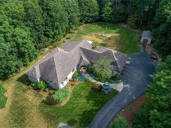 Always dreamed of a couple of acres of privacy? This brick front ranch is PERFECT for those hoping to downsize to a private retreat! Maintenance free -- brick and vinyl sided exterior; Perched on top of your own oasis-- this home has a great flat back yard - surrounded by treed boundaries; plenty of driveway space for all your guests and a two car garage and bonus oversized shed; Enter the pretty main door to the cathedral and open kitchen, dining area and great room! Light and bright, this fantastic open space spotlights a well designed cherry kitchen with granite counters and stainless appliances; Great cabinet storage and oversized center island with seating; mud room leads to the basement access and the oversized two car garage. Cathedral dining room has glass doors to the large wood deck and flows nicely to the great room -- plenty of room for a huge sectional or couches and easy chairs! French doors to the wonderful 3 season porch -- with access right to the backyard for all your backyard parties. Full bath for the guests features a steam shower and first floor laundry space. Two good sized bedrooms for guests or office space; Large master suite with massive walk-in closet and full bath . AMAZING basement space that could be finished for as much additional space as you could need! TONS of storage; Generator with 6 circuits; Hydro air heating. This house is super special for someone who wants privacy but easy access to highways! See you soon.