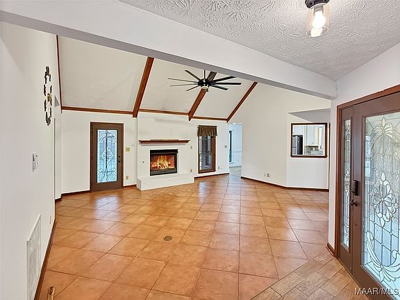 Welcome home to this beautifully updated property perfectly located near shopping, restaurants, and quick access to I-65. From the moment you walk in, you'll be greeted by soaring vaulted ceilings, rich wood beam accents, and stunning wood and tile floors throughout no carpet anywhere! Cozy up by the charming brick fireplace on chilly evenings, or enjoy meals in the spacious eat-in kitchen featuring granite countertops, stone backsplash, stainless steel appliances with convection oven, kitchen slide-outs, and updated white cabinetry. New windows bring in tons of natural light, creating a bright and airy feel.