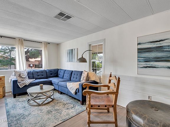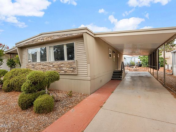 Affordable living in Sedona. This adorable renovated 2 Bedroom, 2 Bath manufactured home is the perfect location in Sedona not only for the views but also to all the major conveniences in town. This property is located in the Sunset Village, a 55+ community. Lot lease is $750 monthly. The amenities include a pool with gorgeous views of Thunder Mountain; Enjoy a game of pickleball or corn hole or meet up for breakfast at the clubhouse. And this property is located across the street from all of these great amenities! The home has a new roof, new flooring, new paint, updated kitchen with stainless steel appliances and both bathrooms have been updated with modern finishes. The Primary bedroom boosts lots of space and natural light. The second bedroom provides additional living space and direct access to the covered patio. There are fruit trees on the property that add a touch of natural charm and potential for personal use and enjoyment. Most furnishings are available to be included in the sale of the property.