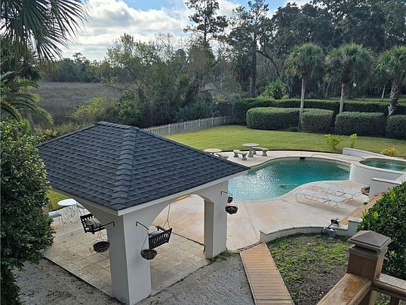 - Exterior features: Architecture Style: Spanish, Association, Attached, Attic, Breakfast Area, Breakfast Bar, Ceiling Fan(s), Coffered Ceiling(s), Courtyard, Crown Molding, Deck, Detached, Double Pane Windows, Driveway, Dryer Hookup, Electricity included in rent, Fireplace, Garage Door Opener, Garbage included in rent, Gardener included in rent, Gas Log, Gas included in rent, Great Room, Grounds Care included in rent, Heating: Electric, High Ceilings, Hot Tub, In Ground, Kitchen Island, Landscaped, Laundry Room, Laundry Tub, Lot Features: Private, Sprinkler System, Wooded, Landscaped, Natural Woodwork, Open, Painted Woodwork, Paved, Paved Driveway, Permanent Attic Stairs, Pest Control included in rent, Pool, Pool Maintenance included in rent, Pool included in rent, Private, Pull Down Attic Stairs, RV Access/Parking, Roof Type: Shake Shingle, Roof Type: Wood, Security System, Sink, Smoke Detector(s), Some Gas Appliances, Sprinkler System, Sprinkler/Irrigation, Tray Ceiling(s), View Type: Marsh View, View Type: Residential, Washer Hookup, Water included in rent, Wooded