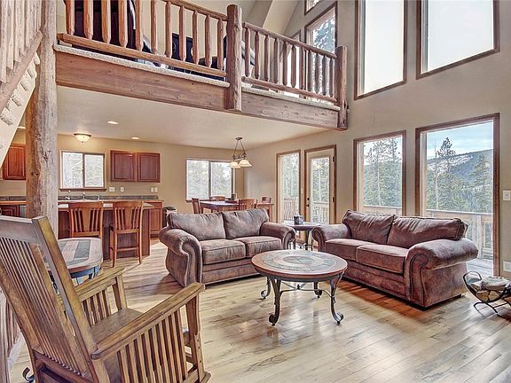 Exceptional mountain views from this impressive mountain home - featuring two decks and a wall of south facing windows for all the best in mountain living. An oversized two car garage invites all your toys and gear. The lower level features a large family room, 10' ceilings, bed/full bath and laundry. The main floor features a stone fireplace, open floor plan kitchen, stainless appliances, vaulted ceilings, wood floors and deck. The upper level master opens to an open loft/office area.