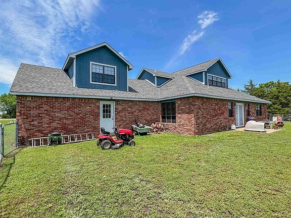 Are you needing some space to spread out. This 5 bed home on an acre is waiting for you. Clad in reclaimed brick from an Enid landmark, the living room and all bedrooms are sizable as well as the dining and kitchen. Upstairs you'll find an extra bedroom and a recreation room above the garage. Perfect for teenagers. Located in a quiet rural neighborhood just minutes from Enid.