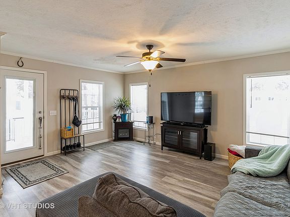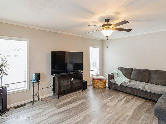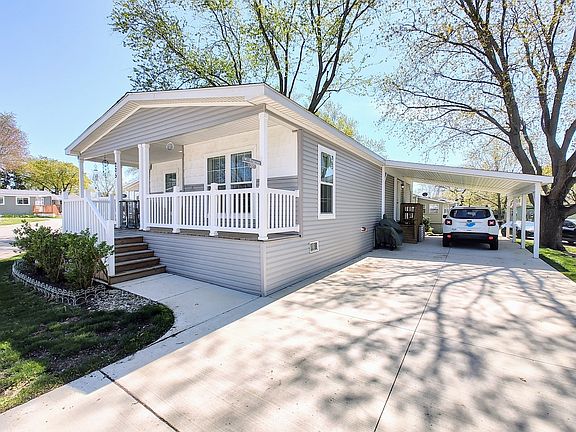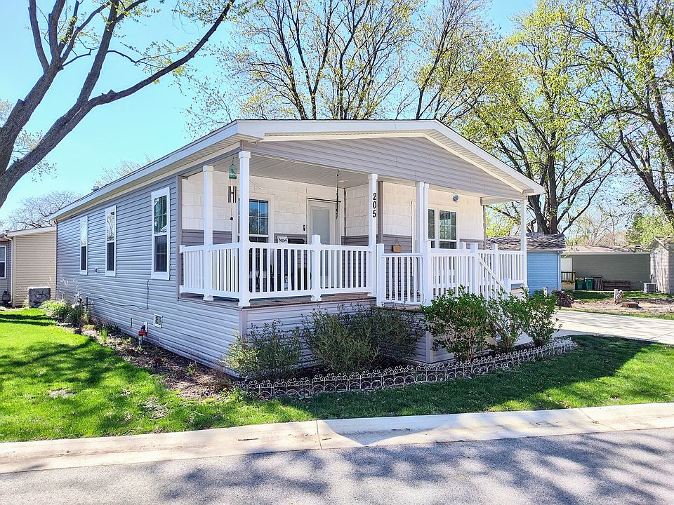 Welcome to your new home in Willow Lake Estates, an AGE-QUALIFIED 55+ COMMUNITY located on the beautiful Fox River! See yourself relaxing on the spacious front porch. Then step inside into the spacious great room that seamlessly blends the living room, dining room, and kitchen with a large center island. You'll love the neutral color palette and gorgeous luxury vinyl plank flooring. Pull up a stool and have a snack at the kitchen island with a double stainless steel sink and modern light fixtures. The master bedroom features a large walk-in closet, ceiling fan, and master bath. The second bath serves the second bedroom and guests. The laundry room leads to the back door and carport. Plus, everything in this home is just 2 years old, ensuring peace of mind and worry-free living for years to come. The monthly lot rent includes lawn care, snow removal and other amenities such as a private stocked lake, paddle boats, and a beach. Willow Lake Estates has a newly remodeled clubhouse with a full library, exercise room with all new equipment, and a sitting area with a 60" television to watch your favorite sports games or movies with your friends and neighbors. Residents can attend crafts, ceramics, exercise groups, various clubs, and parties organized by the Activities Director. Close to I90, METRA stations, PACE, shopping & restaurants; you'll find everything you need just a short drive away. When considering the (HOA) monthly lot rent, please take into account there are minimal property taxes ($171.05/year) and plenty of amenities and services. Please note that a site lot rental application, credit & background check are required. NO RENTALS ALLOWED.