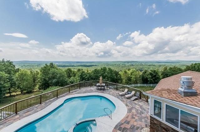 All you will say is WOW!!! Look at the views from this MOUNTAIN TOP RETREAT. Panoramic views of Lake Massebesic, Tower Hill Pond and several hilltops from all south facing rooms in the main house and the in-law. Oh yes a legal In-Law apartment featuring 3 bedrooms, livingroom, kitchen and full bath with laundry over the 4 car garage. Also has private deck to take in the views. HORSE PROPERTY you ask! YES! 4 Stall Barn with hay storage above, heated tack room with electricity and water. 2 Car garage with finished Rec room above is also attached to the barn. The main house has 4 bedrooms 2 1/2 baths, 3 fireplaces and a beautiful CHEF'S KITCHEN with granite, high end stainless appliances, custom cabinets and center island. Views again from the GREAT ROOM and a 3 season room with wood stove. INGROUND POOL with enclosed CABANA and Bath House sit below the main house deck. 800 acres of conservation land surround the property with snowmobile/walking trails as well. DON'T MISS OUT!!!