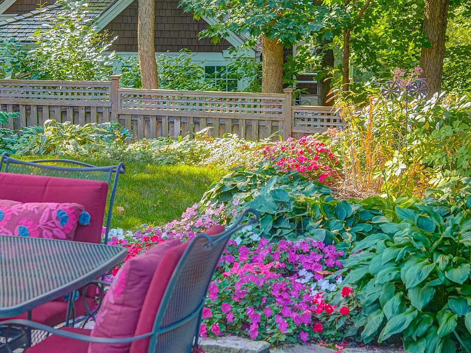 Partially fenced yardHardwood flooringSpacious patioOffice spaceFabulous views of woodsCrown moldingBuilt ins