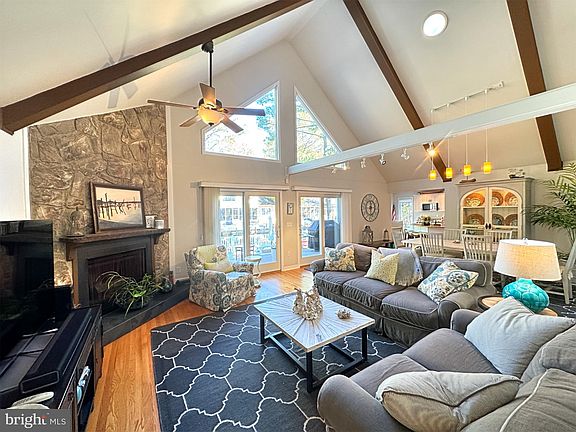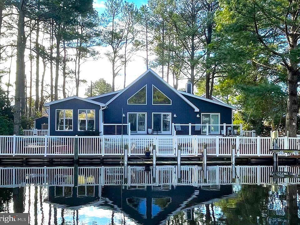 Situated on an oversized waterfront lot and a half in South Bethany, this canal front home offers a private boat dock and electronic jet ski lift with easy access to the wide open bay. This quintessential beach cottage has been meticulously cared for and recently updated blending traditional coastal charm with the modern comforts of today. This coastal retreat features an inviting great room that opens to a waterfront deck and steps down to an expansive waterside patio deck, creating the perfect layout for entertaining both indoors and out. Notable features include wood-beamed soaring ceilings, wood burning fireplace, beautiful hardwood flooring throughout the main level, and a modern kitchen with granite countertops, upgraded cabinetry, stainless steel appliances, and large center island with seating. There is plenty of room to entertain family and friends with 4 bedrooms, 4 full bathrooms, plus a loft perfect for a home office. An attached garage and outdoor shed both offer plenty of storage space for all of your beach and boating needs and a with a semi-circle driveway there is off-street parking for 5 cars. Offered partially furnished and ready to be enjoyed, this home is situated on a quiet non-thru street that is just a few blocks to the ocean. Walk to the life-guarded South Bethany beach or take the boat, jet ski or kayaks out for a day on the water with the ability to dock your boat just steps from your back door.