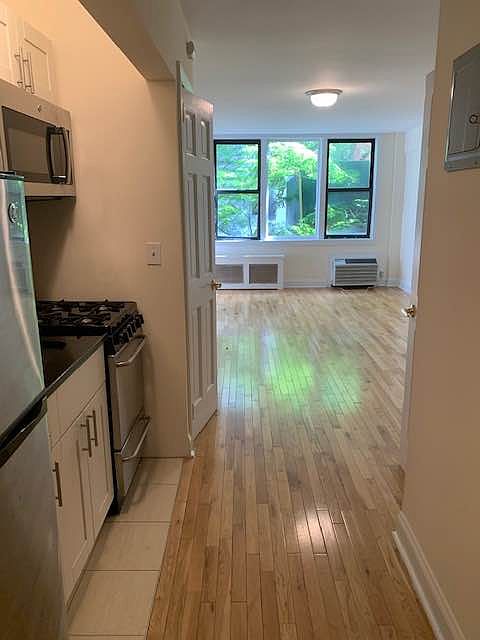 **15% of 1 Year's Rent Broker Fee Applies.** **In-person showings only. No virtual tours or site unseen applications being offered at this time.** **No video or floorplan available.** Southern facing sunny studio in a pet friendly building with a live-in super, laundry and elevator. Spaciously laid out to fit any sized couch, bed, entertainment system and more. Modern kitchen with stainless steel appliances and granite counter-tops. Ample storage space and hardwood floors throughout. Great management, easy and quick approval.