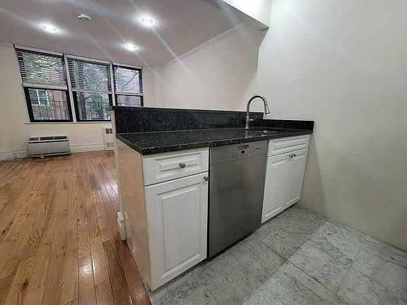 Absolutely stunning gut renovated studio in a pet friendly building with a live-in super, laundry and elevator. Spaciously laid out to fit any sized couch, bed, entertainment system and more. Amazing kitchen with high end stainless steel appliances, a dishwasher, built-in microwave and granite counter-tops. Modern marble bath with a bathtub. Facing the back of the building so its very peaceful. Ample storage space and recessed lighting throughout. Great management, easy and quick approval.
