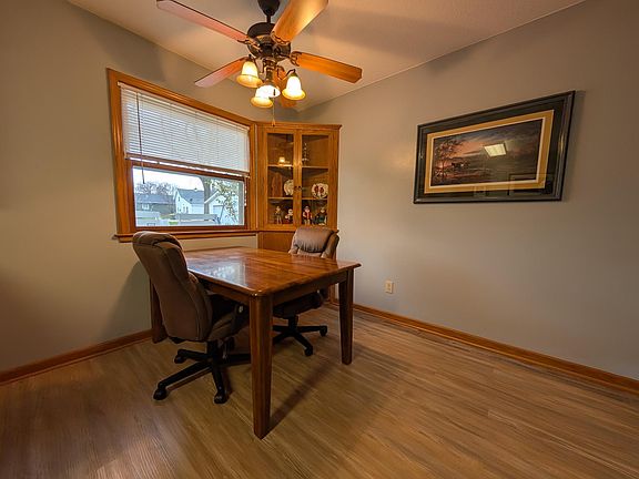 Looking for your first home - or you last, as in time to downsize and reduce chores? Check out this little beaut! Built on a slab, so no basement worries, either! This 2 bedroom, one bath home offers open flow from living to dining area and great natural lighting throughout. Prior owner replaced all exterior doors, poured new concrete driveway and sidewalk. Current owner has replaced the roof, kitchen, living and main bedroom flooring, and painted the interior and added a back deck! The new stainless steel refrigerator and water softener are the icing on the cake, so to speak! Combined laundry/mechanical/storage room provides access to attached single stall garage with service door to large back yard. Owner currently uses the partially finished garage as workshop. Shed stays! Truly a move in ready home! All appliances will remain with the home. Option to purchase home fully furnished with reasonable offer. Check it out soon and you can move in before the snow flies.
