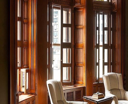 Thoughtfully curated finishes include Ralph Lauren bespoke wall coverings, restored original wainscoting, and lavish textures that echo the building’s turn-of-the-century roots.