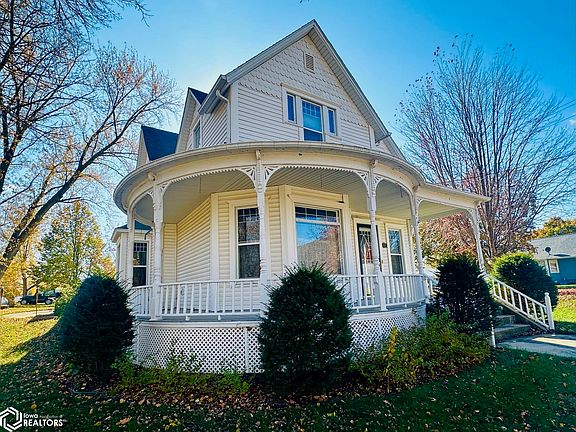Charming home in a quaint Iowa small town. This property boast of space and quality preserved craftsmanship throughout the home. Main floor master bedroom and bath, open kitchen with eat-in kitchen and walk out patio doors. Dining room and main living room all open concept with original operable pocket doors. Upper level has 3/4 bath and 3 bedrooms. Attached 2 stall garage is extra deep for tool bench, and rec and lawncare items. Property is right across from the city park. Call today to schedule a showing!