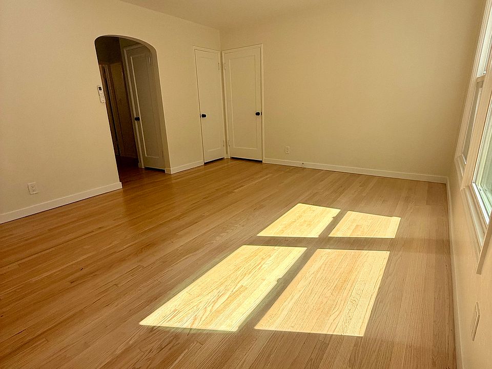 Classic Warm Refinished Toned Hard Wood Floors, Newly Painted walls and new base board throughout. New Kitchen Cabinet Hardware and Door Fixtures.