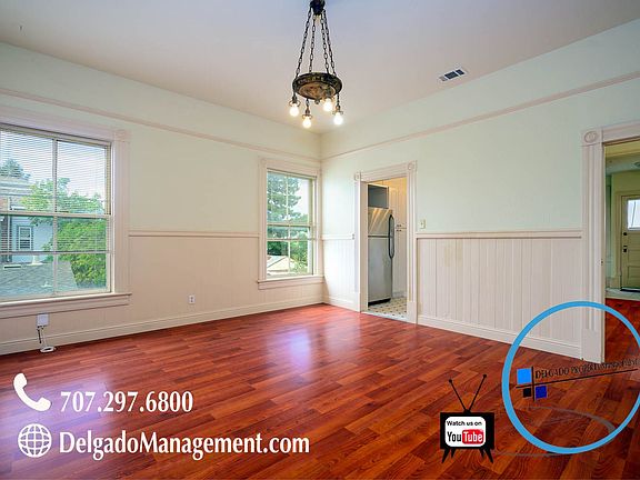 Beautiful Victorian home located downtown Benicia. Home has high ceilings, large rooms, large windows that let in a lot of natural light as well as a large kitchen. There are beautiful unique features to this home that are too many to try and describe. Washer and dryer hook up in unit, and water, sewer and trash included. This home will go quickly so if you are looking to move downtown this is your perfect opportunity. Don't wait call now and make Benicia your hometown! . - Lease Duration 12 months - Must make 3 times the rent as income - $40 Application fee per adult - 2 Years of employment and rental history - Must carry renters insurance throughout tenancy - 650 or above credit score is required - Please submit your applications through Delgado Property Management website - We do not accept Zillow rental applications or any third party applications.