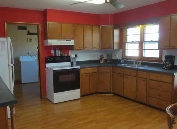 215' x 143' lot with 1246 sq ft, 2+ large bedrooms, 1 bath home with full basement and attached garage. Home has 22' x 13' living room, 16' x 13'+ kitchen, 8' 7" x 6" dining area with sliding doors to the stone patio. The 9' 8 x 11' 9 utility room has storage cabinets and a pantry. The attached garage has storage shelves and entry to the full basement. There is an additional garage shop in the back of the property. The lot has 2 apple trees and enough open area for a small garden. The bathroom was updated in 2005 and the roof and guttering replaced in 2006 and 2007. Exterior paint was done in 2007.