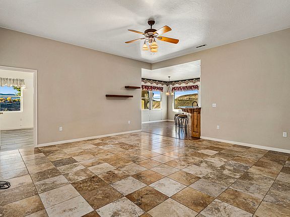 Experience the breathtaking beauty of Southern Utah in this stunning home situated on a gorgeous half-acre view lot in Toquerville Heights. This property offers a seamless blend of comfort and scenery with views galore that greet you the moment you arrive. The exterior welcomes you with fresh paint and easy-maintenance desert landscaping. Step inside to discover an open-concept floor plan with travertine tile and durable LVP flooring throughout. The large master suite is a haven, complete with a deep soaking tub, a separate shower, dual sinks, and two generous walk-in closets. The outdoor living space is equally impressive, offering a dedicated fire pit area with a picnic table where you can relax and soak in the panoramic vistas. For those needing extra space for hobbies or work, the property includes a versatile outbuilding equipped with power and a window A/C unit. Meticulously maintained and updated, this home provides peace of mind with a new air conditioner and a new drip system timer. It is truly move-in ready and waiting for you.
