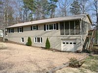 This great raised rambler on the lake in Lake of the Woods features a great open floor plan on the main level, with exposed beam vaulted ceilings and beautiful French doors that flood the living area with light and take advantage of the beautiful water front views. Upper level features newer carpet over the hardwood floors. Open kitchen adds to the great room feel of the main level and a beautiful brick fireplace add interest and architectural detail. A large screened in porch and expansive r...